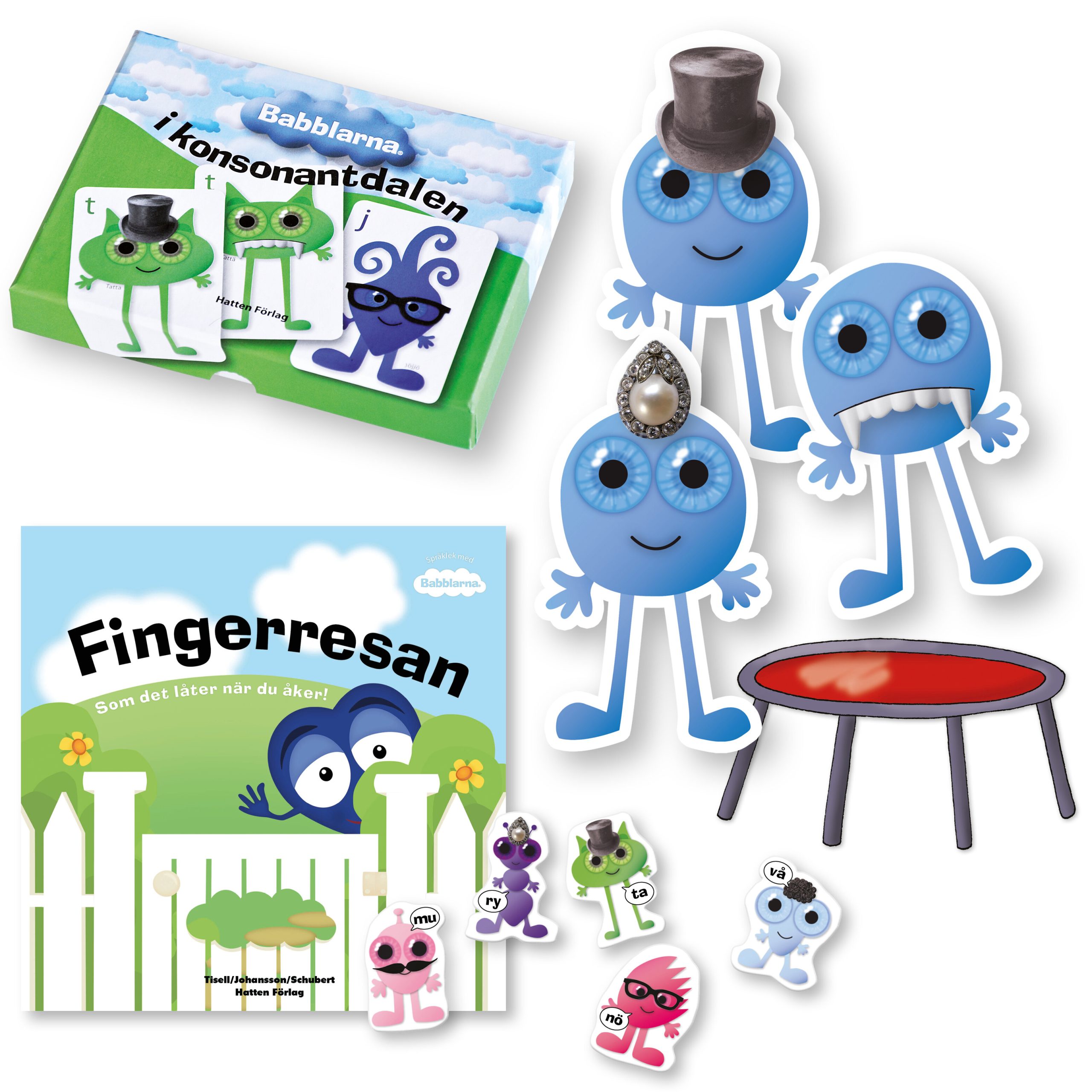 Paktet innehåller boken Fingerresan med Babblarna pappfigurer, Ordfigurer Babblarna konsonantfigurer och Kortspelet "Babblarna i konsonantdalen". Paketet levereras med en fin gympapåse som materialet kan förvaras i. Färgen på gympapåsen varierar och behöver inte stämma överens med bilden.