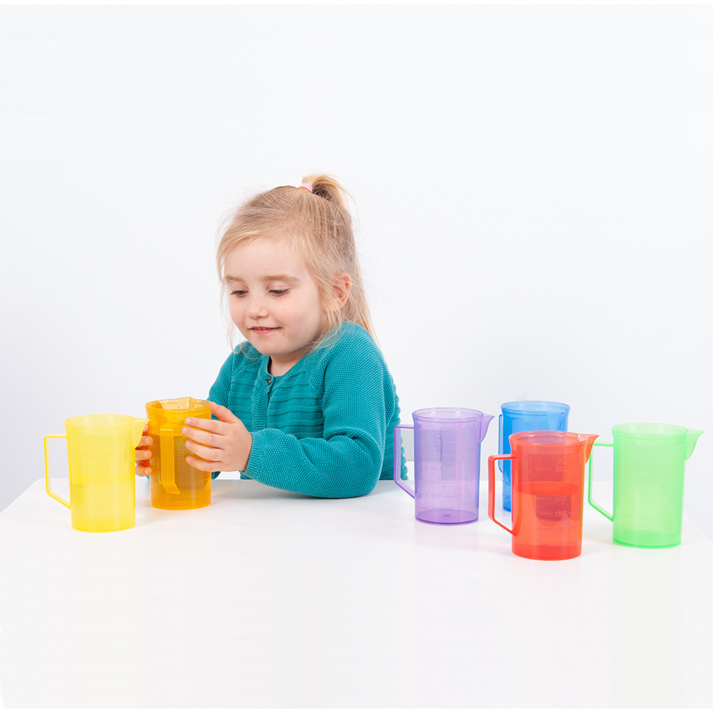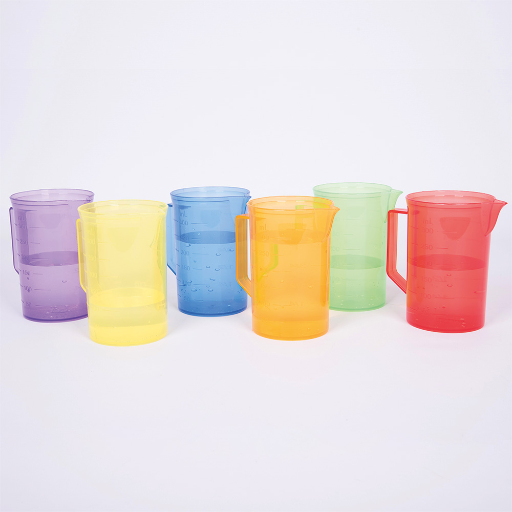 Lagom stora bägare att hantera för barn. Roliga att använda till experiment, mätning och vattenlek.