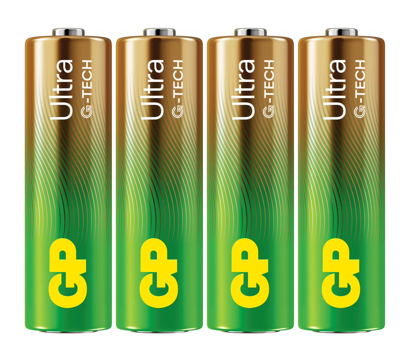 GP Ultra Alkaline AA-batteri, 15AU/LR6. Alkaliskt standardbatteri för de flesta produkter med låg till medelhög strömförbrukning som leksaker, väggklockor och ficklampor. Lång livslängd. Patenterad konstruktion för att förhindra batteriläckage. Svanenmärkt.