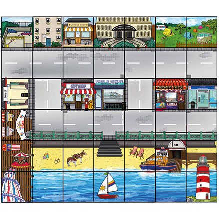 Navigera Bee- och Blue-Bot runt den lilla badorten. Besök räddningsstationen, piren, köp några souvenirer i presentbutiken, eller ta en promenad ner till stranden.