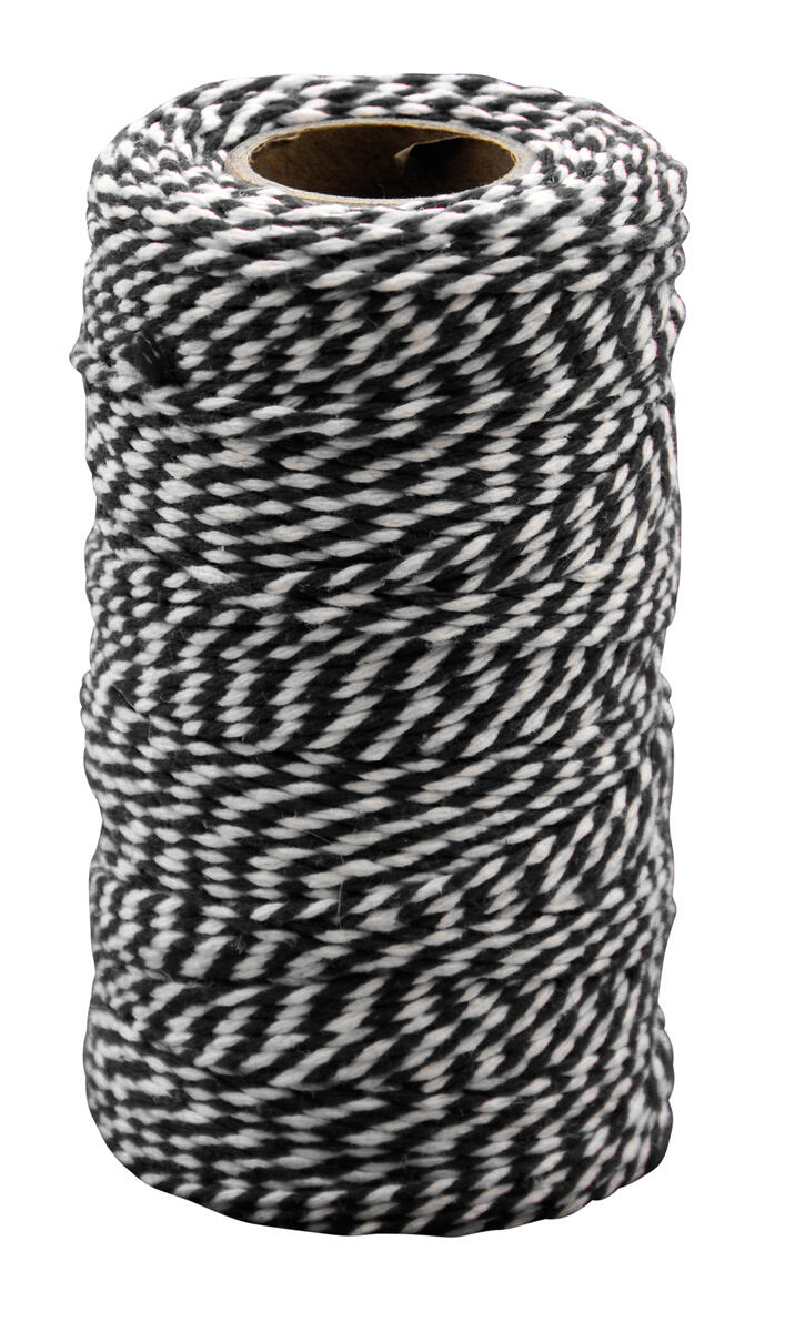 100 meter svart/vitt bomullssnöre med diameter 2 mm.
