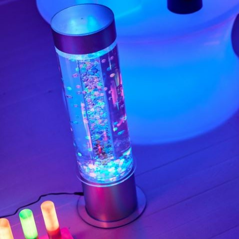 Ett lite vidare bubbelrör som ändrar färg och styr bubblorna genom en kolumn i bak...