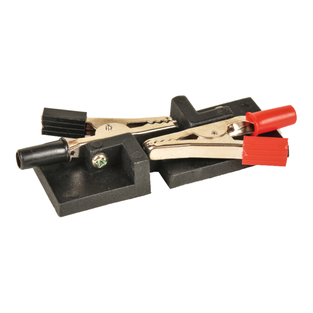 Varje krokodilklämma har ett 4 mm uttag för ledningsanslutning.