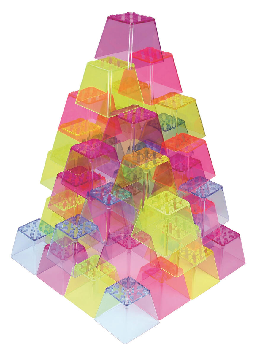 50 st/fp. Gör byggandet till ett sensoriskt äventyr! Klossarna staplas lätt på varandra och skapar olika färger när de överlappar varandra. Används med fördel på ett ljusbord. Mått: 5×6 cm.