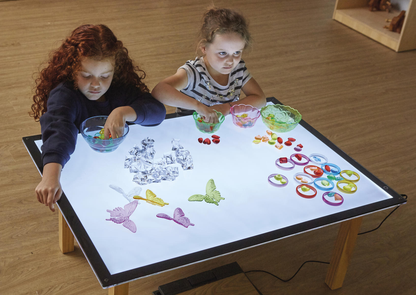 Tunt och lätt ljusbord i det stora A1-formatet, idealiskt för att utforska med ljus. 3 styrkor på ljuset. Mått: 59×84 cm.