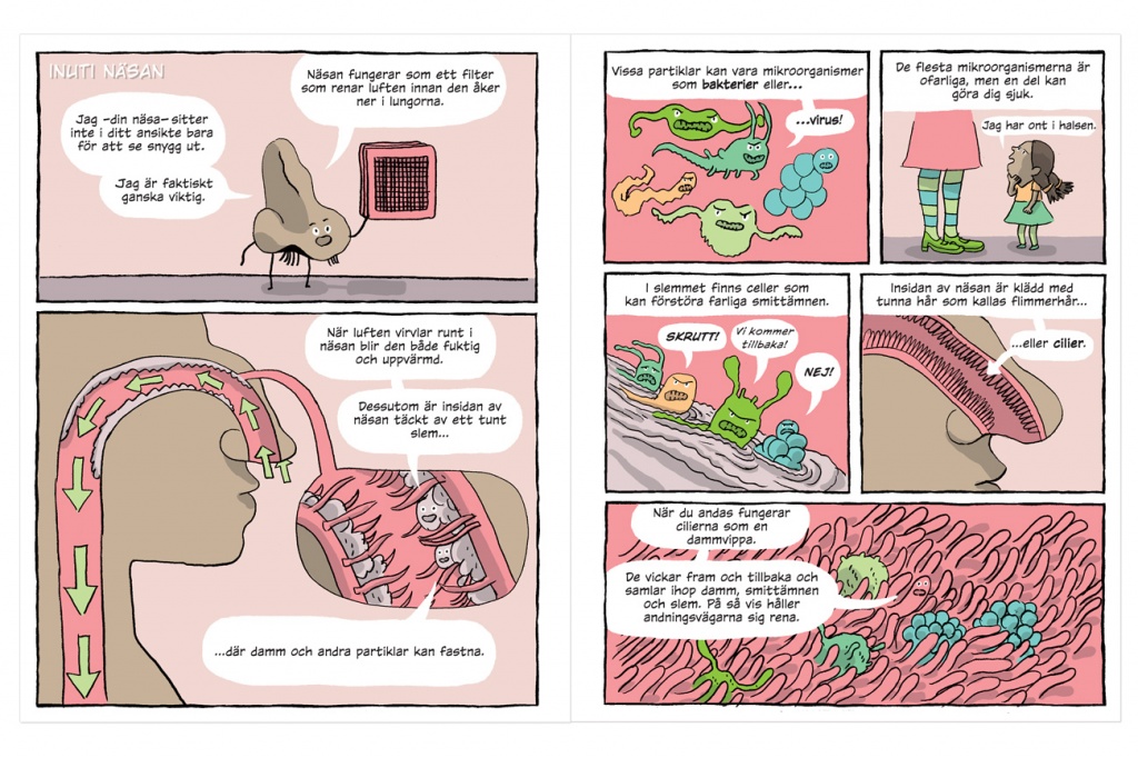 Naturens byggstenar är en ny bokserie med tydliga illustrationer ritade i serieform. De färgglada bilderna gör det roligt att lära sig om hur kroppen är byggd och hur den fungerar. Böckernas enkla och humoristiska språk stimulerar läslusten och gör varje sida till en spännande resa bland celler, muskler och olika kroppsdelar.