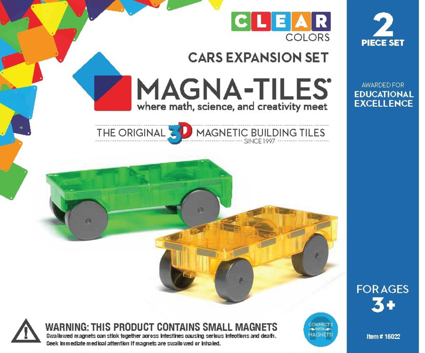 Magna-Tiles är stora magnetiska byggplattor som är riktigt roliga att bygga med. Detta set innehåller 2 bilunderreden på hjul som ger byggleken extra värde och utökade möjligheter. Barnen får möjlighet att bygga alla möjliga typer av fordon. Mått: 15×7,5 cm. Av ABS. Från 3 år.