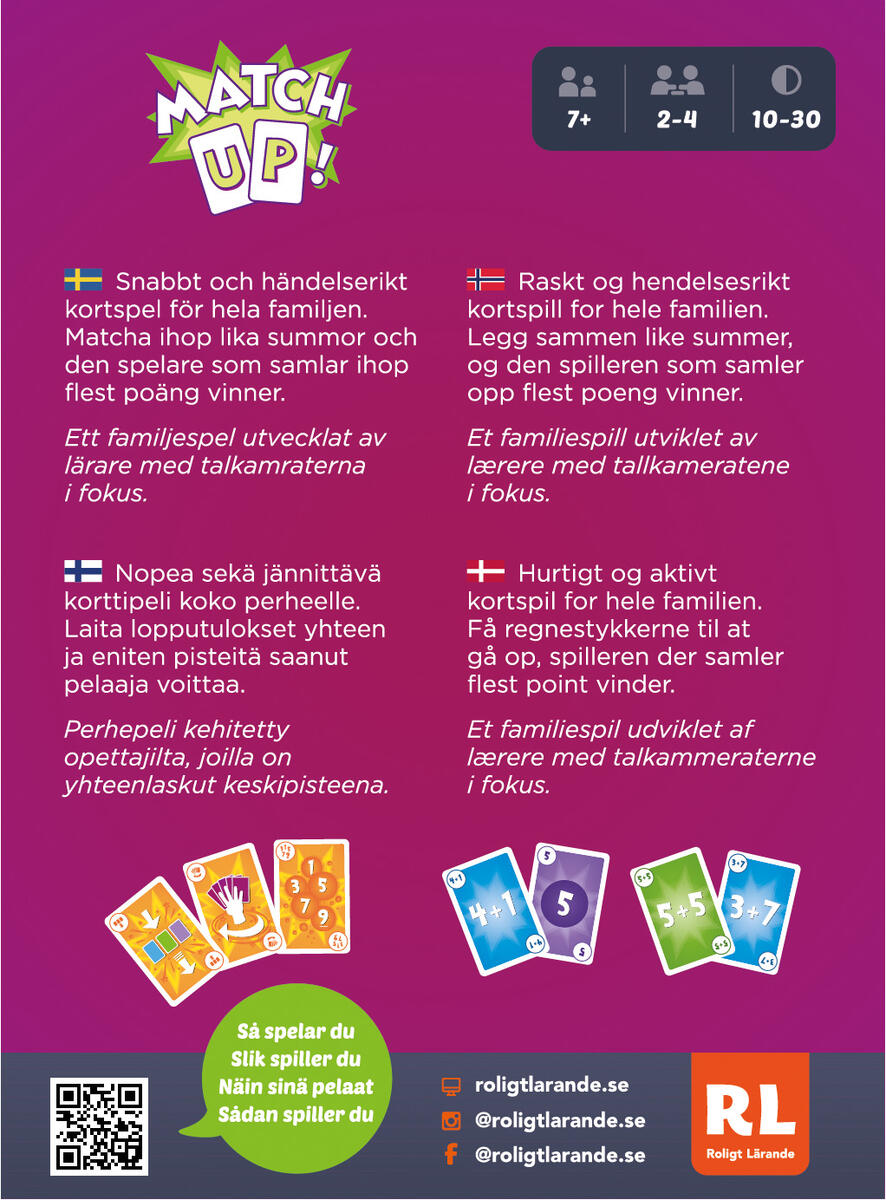 Ett snabbt matematikspel där deltagarna blandar spelglädje med grundläggande träning i att lära sig talkamraterna i addition inom talområdet 0–10. Spelet går i korthet ut på att samla på sig så många poäng som möjligt genom att hitta matchande par.