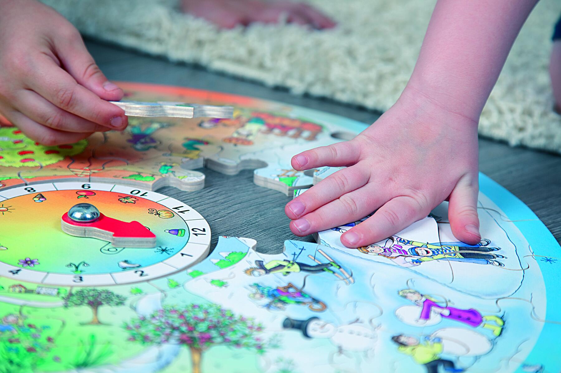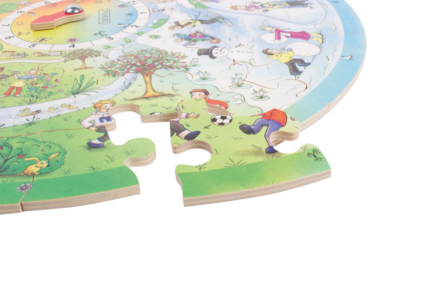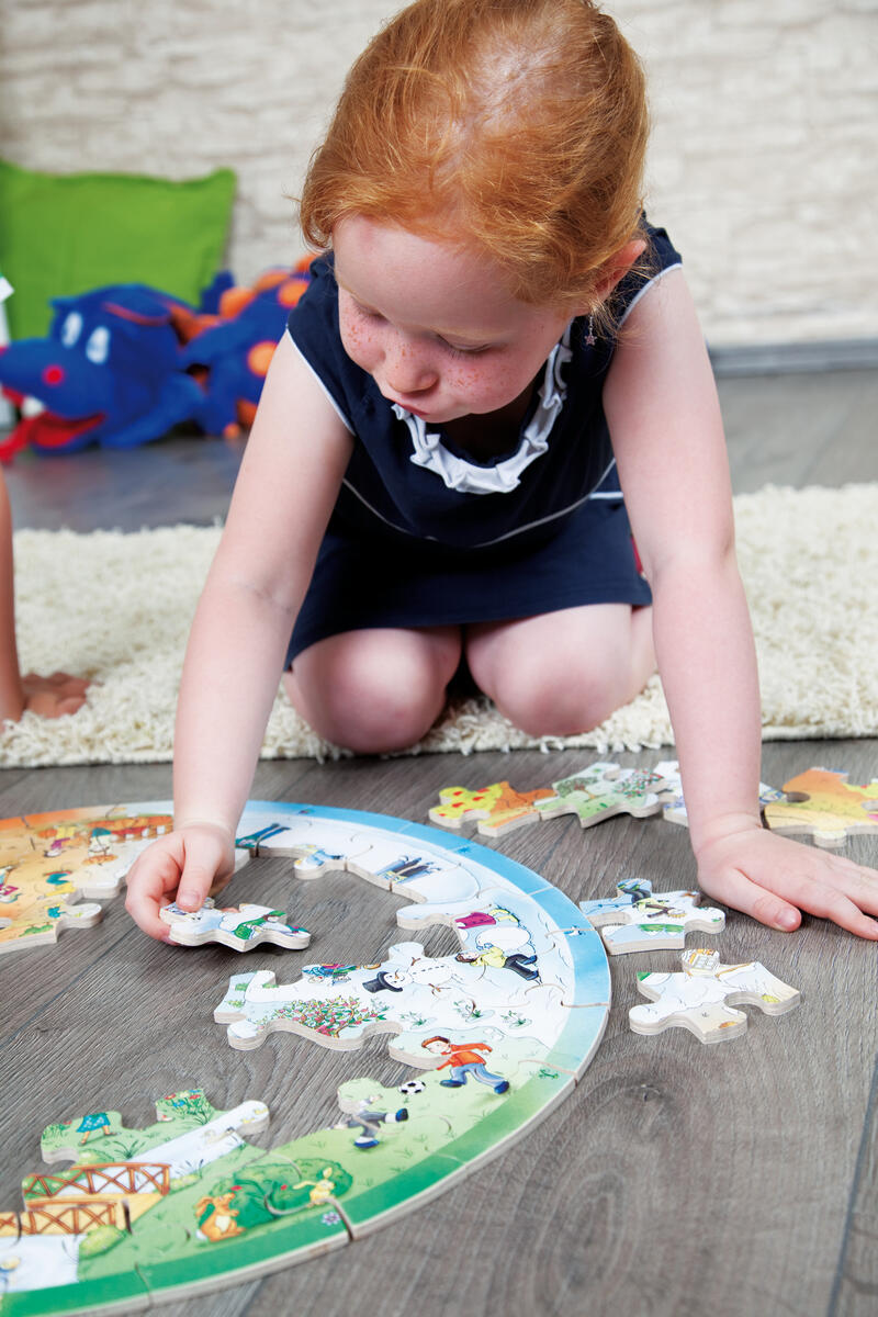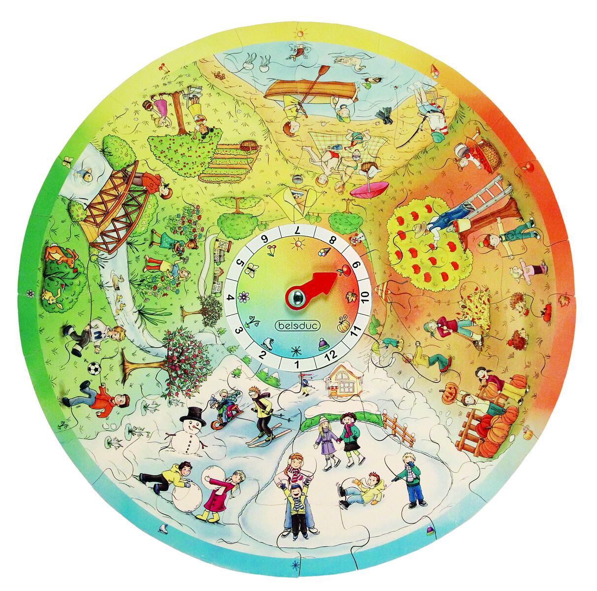 48 bitar. Detta lärorika årstidspussel ger barnen möjlighet att bekanta sig med årstiderna genom att känna igen olika lekar man gör olika tider på året. Detaljrikt pussel i trä som kan pusslas av flera personer samtidigt. PVC-fri. Från 4 år.