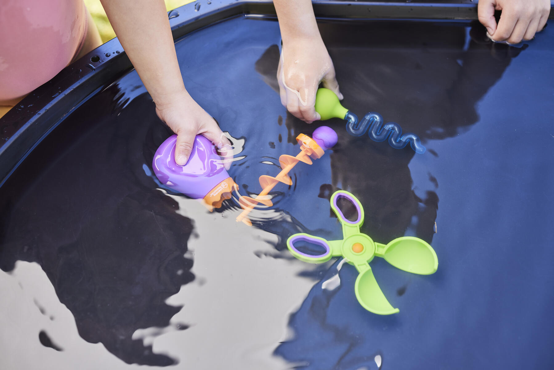Roliga vattenredskap för att experimentera med vatten. Uppmuntrar till att utveckla finmotor...
