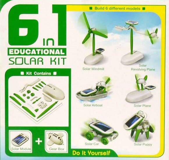 Byggsats för att kunna bygga en solcellsdriven modell med sex olika...