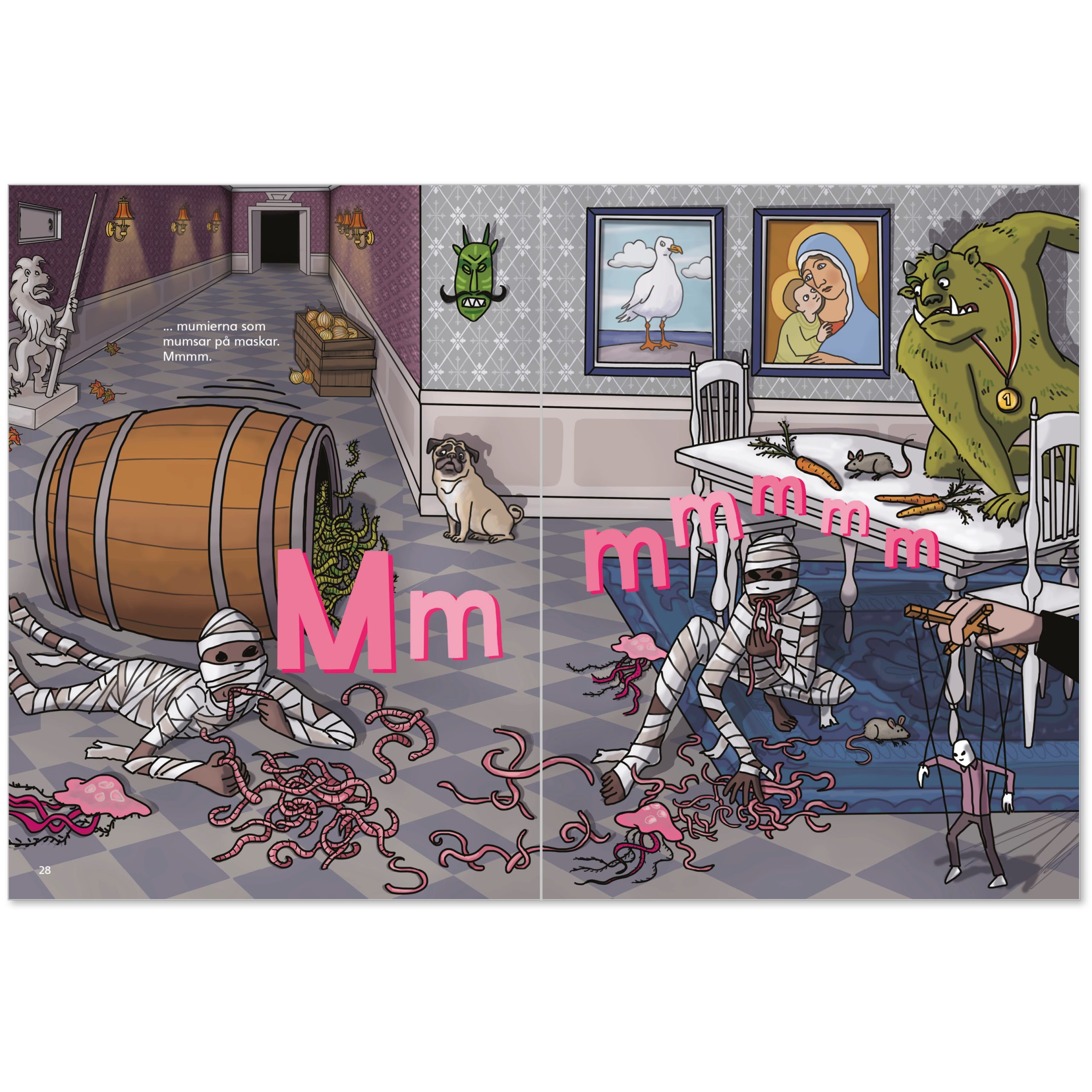 Den här ABC-boken liknar ingen annan! Den är full av andar och benrangel som andas "Aaaaa" och låter "B-b-b" för att inte tala om mumierna som mumsar på maskar: "Mmmm."