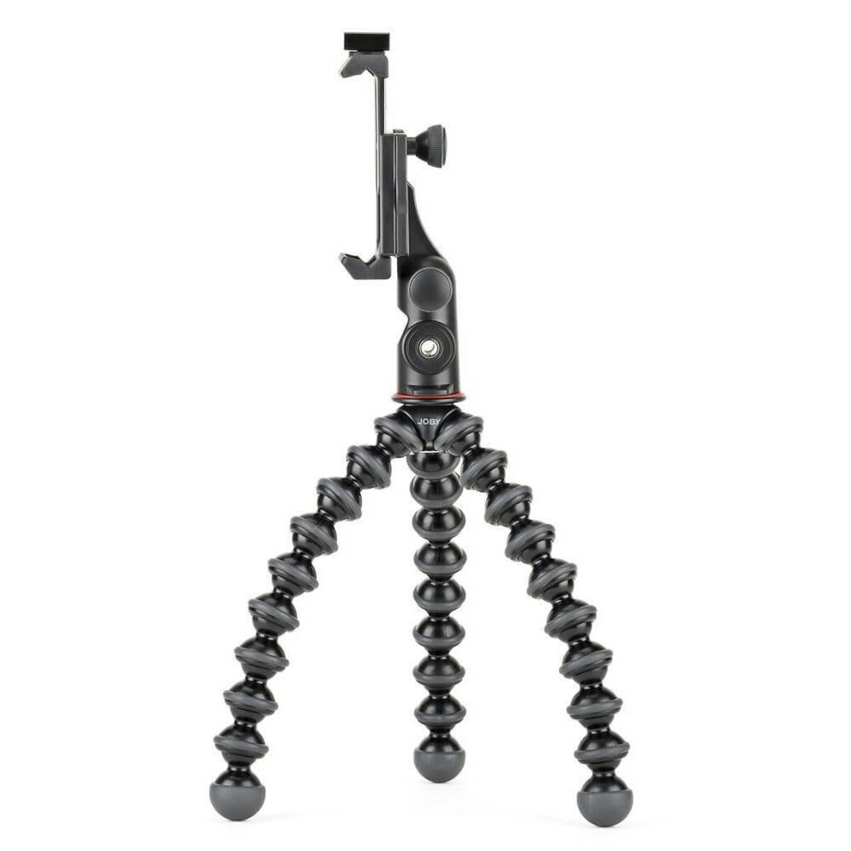 Ett kompakt och flexibelt stativ för smartphone med tre böjbara och ledade ben som är klädda med gummerade greppringar.