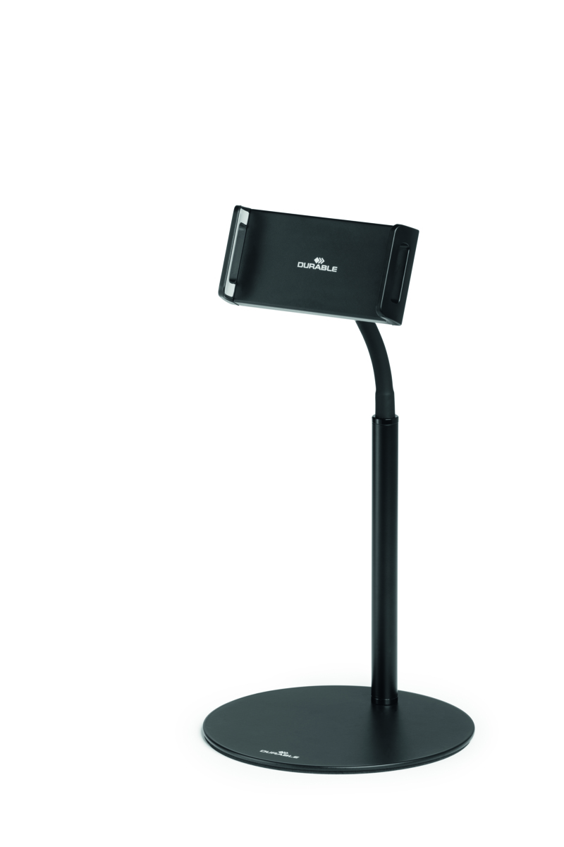 Bordsstativ med hållare för surfplatta eller mobil. Böjbar svanhals och kulled. Den böjbara svanhalsen möjliggör en individuell och steglös justering av höjden. Antiglidkuddar i hållaren skyddar mobilen eller surfplattan mot repor samtidigt som enheten sitter i ett stadigt grepp. Öppning i hållaren för laddningskabel. Vridbar 360 grader för justering till önskad vinkel. Passar surfplattor och mobiler från 4,7" upp till 13" med maxvikt på 800 g.