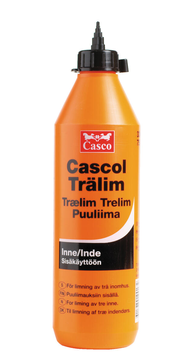 För trälimningar inomhus. Arbetstemperatur över 10 °C. Härdar snabbt. Träet kan bearbetas efter 10-15 min. 750 ml. Vattenbaserat. Plastflaska av polyetenplast.