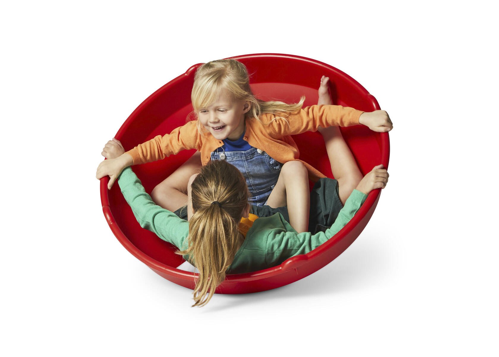 Kan användas både ute och inne samt i vatten. Lämplig även för grundläggande fysisk koordinationsträning för funktionshindrade. OBS! Ingen klämrisk! Mått: ø 80 cm, djup 44 cm. Av HDPE-plast. Från 2-10 år. Svanenmärkt, licensnummer 5095 0001