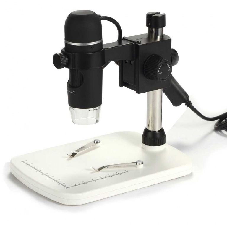 Mycket prisvärt USB-mikroskop med 5 MPixels bildupplösning. Medföljande cd innehåller programmet MicroCapture Pro där du har möjlighet att kalibrera storleksangivelser med hjälp av mätskala. Du kan få exakta längd- och ytmått när du tittar på bilder av preparat. Programmet har möjlighet att ta tidsstyrda bildsekvenser sk time lap.